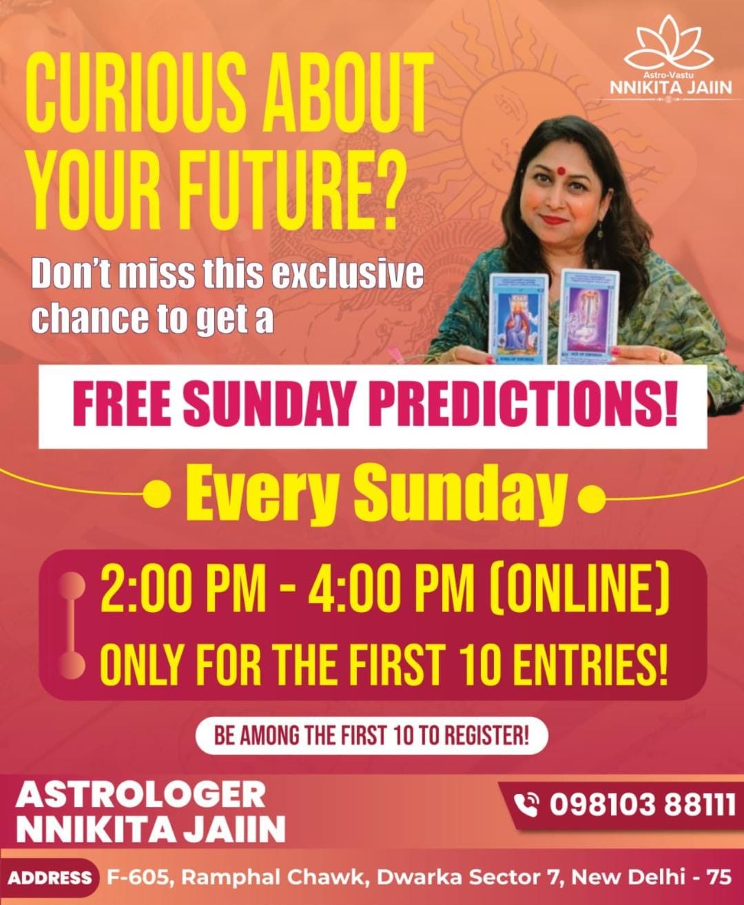 Renowned as one of the best astrologers, NNIKITA JAIN combines deep Vedic knowledge with intuitive insight to help you find clarity in health, relationships, career, and life decisions. Her accurate predictions and remedies have transformed countless lives. Consult today and take the first step toward peace, success, and happiness.